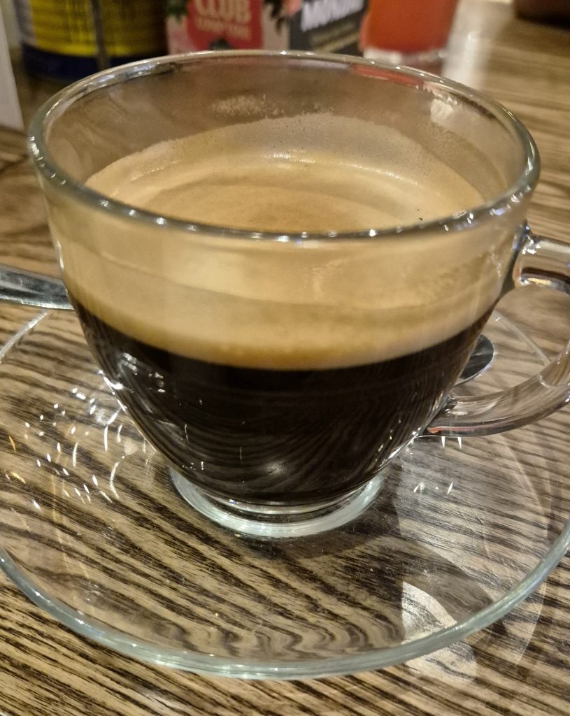 Before you judge me for taking my custom to a chain just know it was at insistence of friends although I do like the food. On this day in bath I wasn’t there for the food – my wife and I had already eaten at The Bath Townhouse. Our friends were ravenous and so into the garish purveyors of Lebanese food we went. My wife shared a brick sized slice of mango cheesecake and of course I ordered a black americano – I was already flagging at this point and as I was driving I needed the fix. I was glad I opted for this instead of a diet soda because the drinks served to me was as close to perfection as once could get.